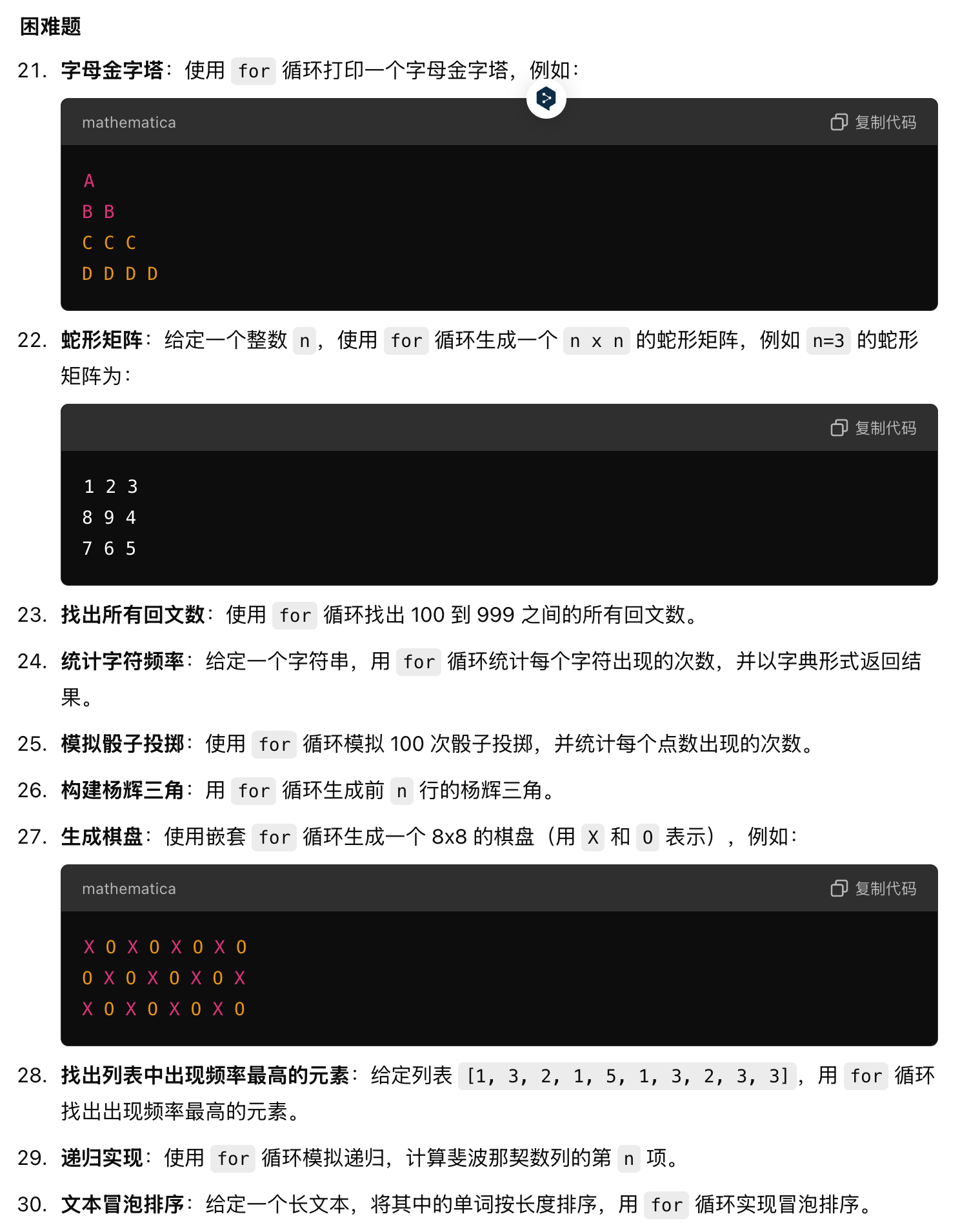 打印 1 到 10:用 for 循环打印从 1 到 10 的数字。